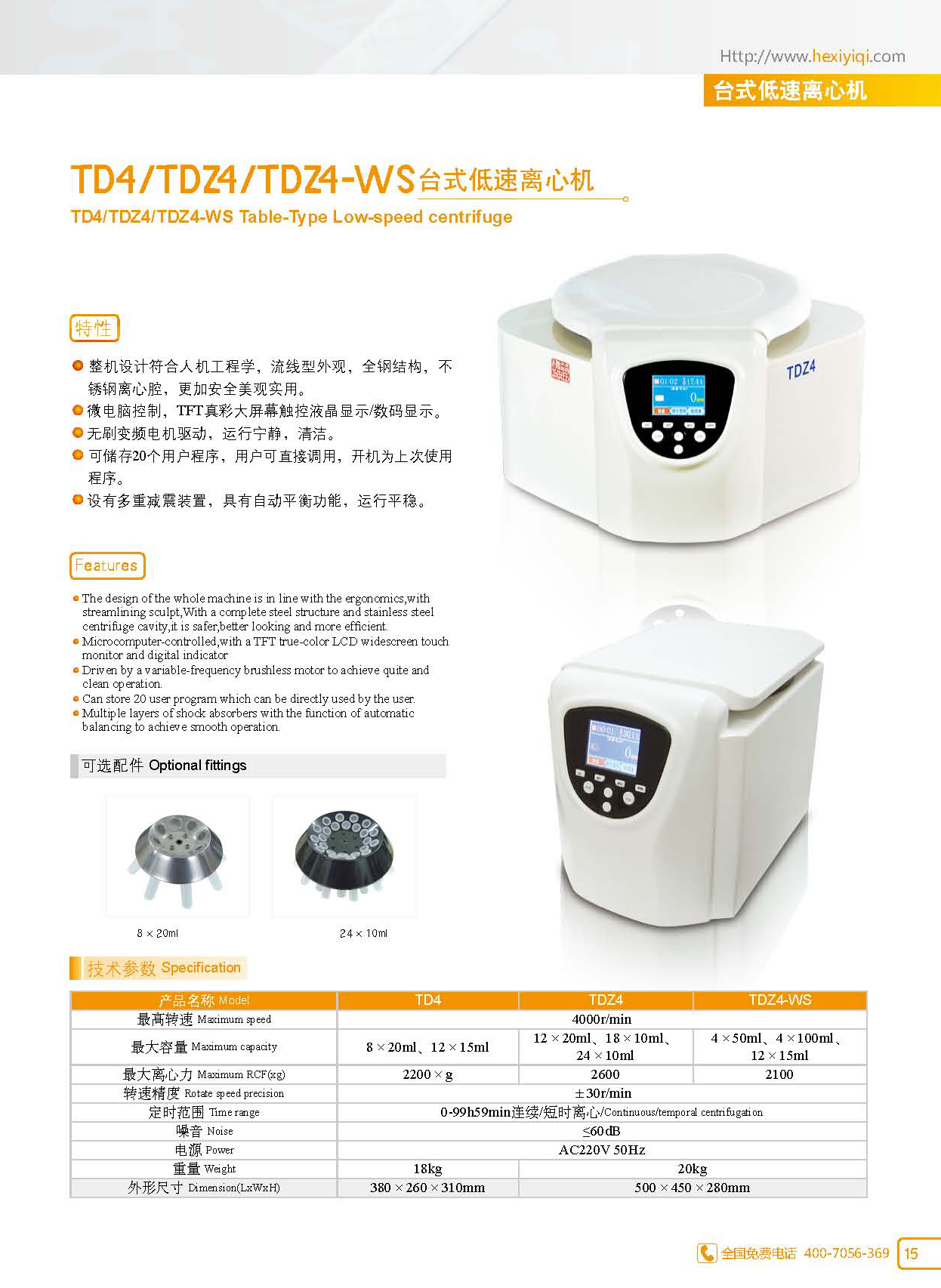 TD4、TDZ4、TDZ4-WS臺(tái)式低速離心機(jī)特性: